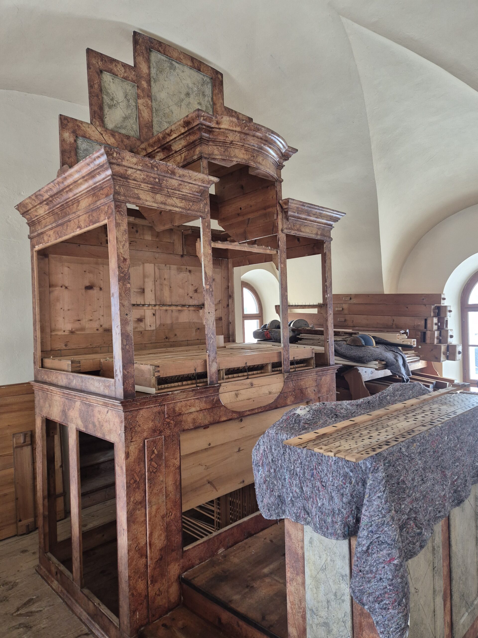 Orgeleinweihung am 19. April 2026 statt. (Termin vormerken!) Die Kirche kann für Gottesdienste etc. weiterhin ungehindert benützt werden.